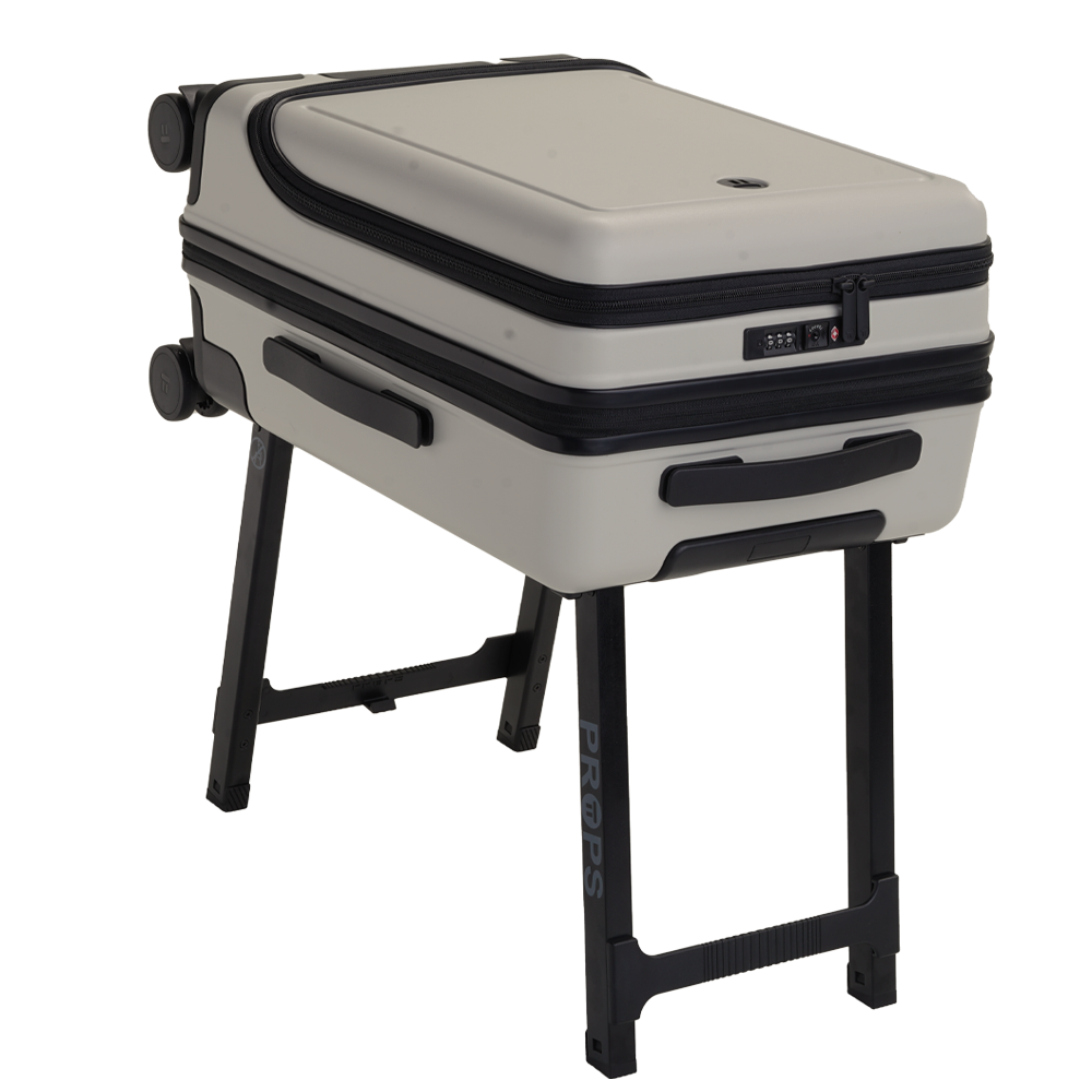 The PROPS® 22” carry-on will transform your travel experience. Our expandable leg system creates an instant work surface making layovers more productive while our unique top-lid opening makes packing and unpacking more efficient. A telescopic handle and 360° spinner wheels ensure a smooth and effortless ride. Durable yet lightweight, PROPS™ is designed to help you travel smarter, not harder.