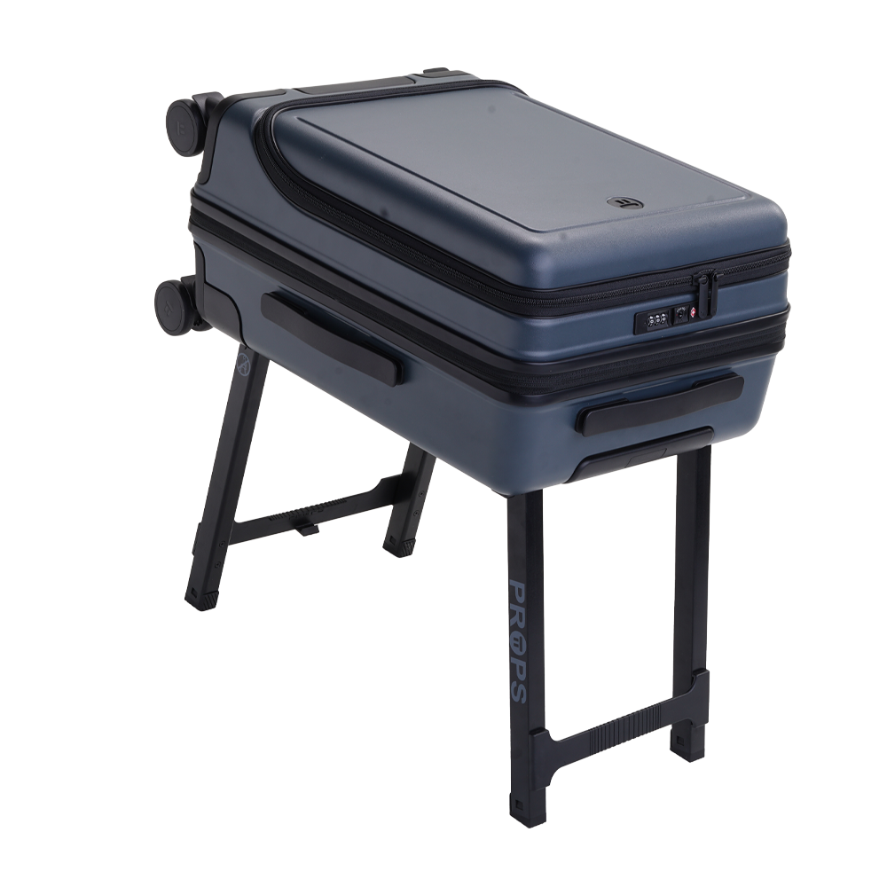 The PROPS® 22” carry-on will transform your travel experience. Our expandable leg system creates an instant work surface making layovers more productive while our unique top-lid opening makes packing and unpacking more efficient. A telescopic handle and 360° spinner wheels ensure a smooth and effortless ride. Durable yet lightweight, PROPS™ is designed to help you travel smarter, not harder.